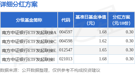 本站消息联美配资,10月31日发布《南方中证银行交易型开放式指数证券投资基金发起式联接基金分红公告》。本次分红为2025年度第3次分红。公告显示,本次分红的收益分配基准日为10月10日,详细分红方案如下: