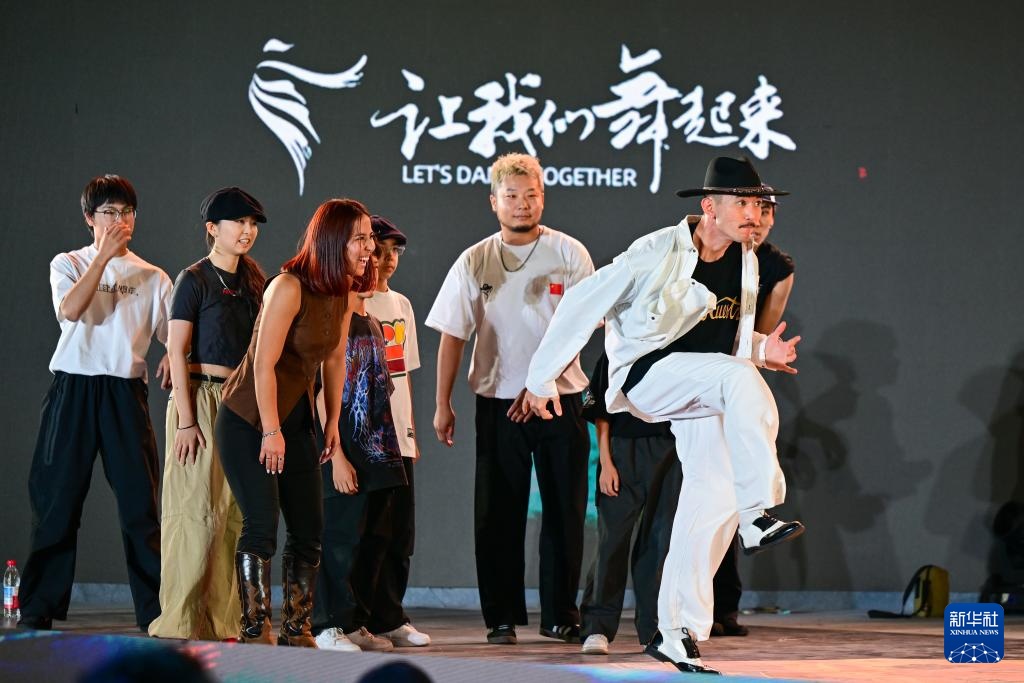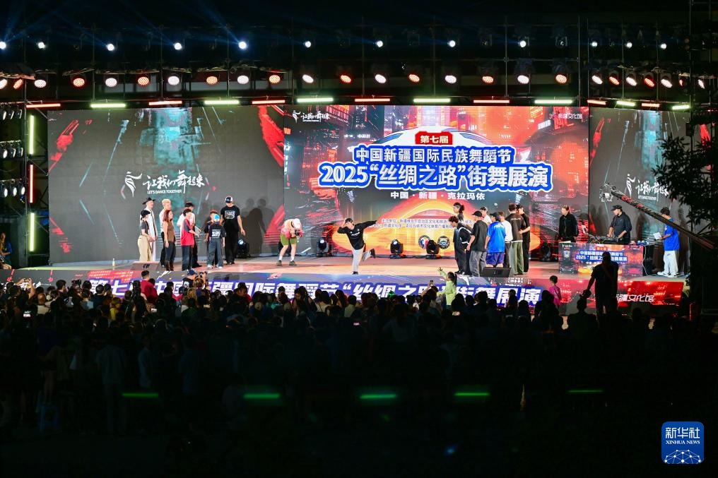 8月3日,中外舞者在2025“丝绸之路”街舞展演活动中进行斗舞展示。新华社记者 丁磊 摄