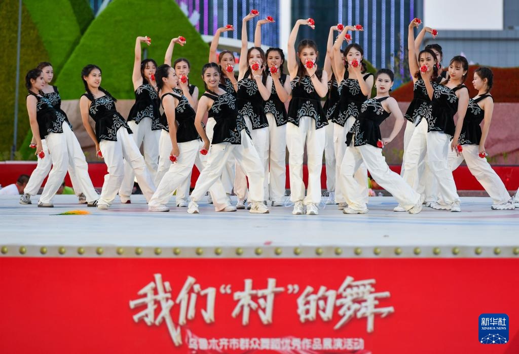 乌鲁木齐市达坂城区舞蹈队在“我们‘村’的舞”乌鲁木齐市群众舞蹈展演活动上表演舞蹈(7月28日摄)嗨牛股票。新华社记者 胡虎虎 摄